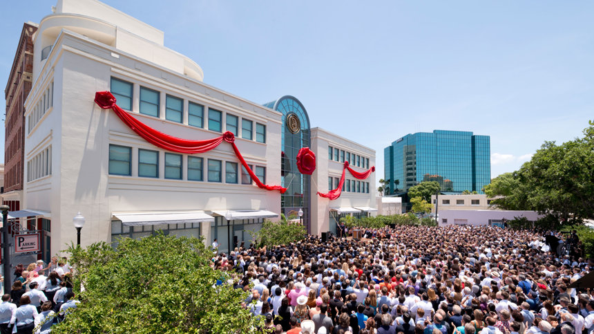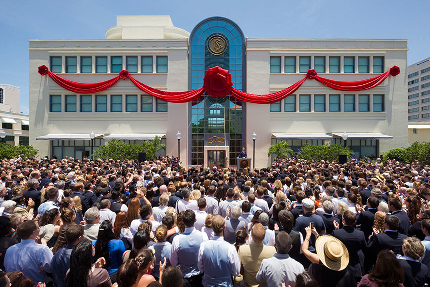 Más de 4.000 scientologists se reunieron en el centro de Clearwater, Florida, el domingo 29 de junio, para celebrar la inauguración del emblemático Edificio Coachman. La estructura histórica se encuentra ahora transformada, como el centro de asesoramiento y entrenamiento religiosos para los más de 2.000 miembros que comprende el ministerio eclesiástico de la Base en Tierra de Flag, la sede espiritual internacional de Scientology.