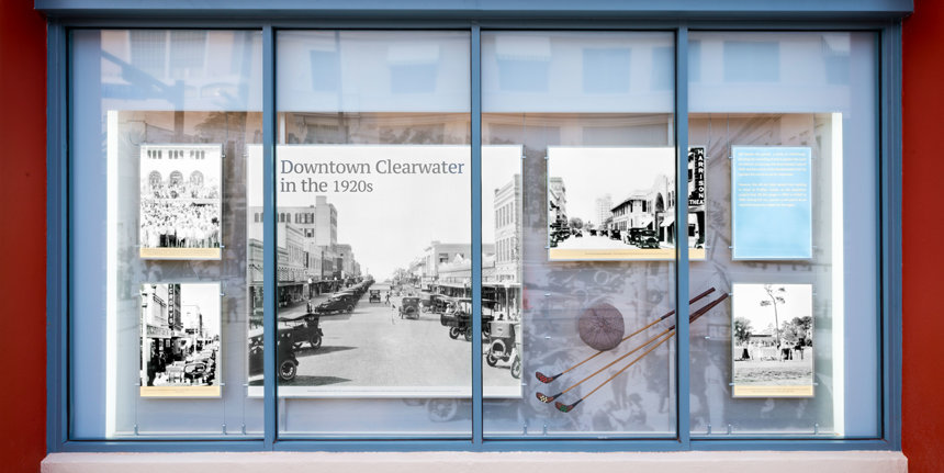 En homenaje a la historia de Clearwater, la Iglesia ha establecido una exhibición permanente extendiéndose a lo largo del exterior del Edificio Coachman en Cleveland Street y Fort Harrison Avenue. La exhibición presenta fotografías, puestos de información y artefactos que trazan la herencia de la ciudad desde sus primeros días hasta el presente. Entre los muchos momentos históricos de Clearwater que la exhibición muestra se encuentran: