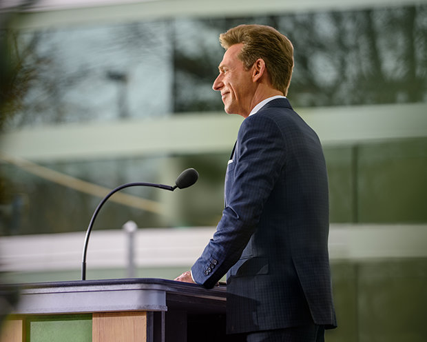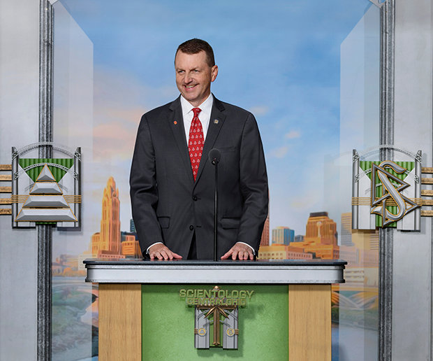 El Sr. David Miscavige, líder eclesiástico de la religión de Scientology, se dirigió a todos los presentes, incluyendo a aquellos feligreses que ayudaron a llevar a la vida a esta nueva Iglesia: “Muchas gracias y ¡qué honor es estar en Columbus en el día en que pones el punto en la “i” de Ohio! Así ni que decir, este es también un día para hinchar sus pechos con orgullo del Medio Oeste. Porque, aunque Colón puede que haya descubierto América, gracias a su perseverancia, tenacidad y audacia pura, acaban de darle a Estados Unidos una nueva Iglesia de Scientology con la que ahora se pueda descubrir a sí mismo”.