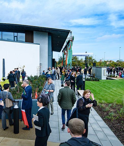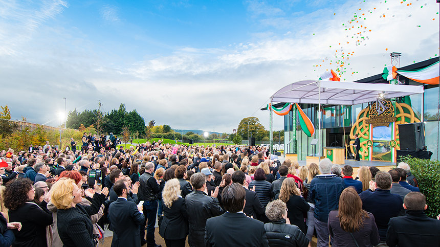 Enfatizando las oportunidades que se crean al transformar un lugar abandonado en un revitalizado centro para la comunidad local, dignatarios locales y de la ciudad honraron el compañerismo y el espíritu de la ocasión. Estos incluyeron a: la Sra. Nicola Keating, activista antidrogas de Tallaght, la Sra. Amina Mustafa Keogh, directora del Programa de Deportes Contra el Racismo; y el Sr. Philip Cummings, poeta y traductor galardonado.