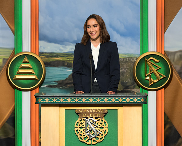 “Así que para Irlanda eterna, Irlanda trascendental: Mantuviste viva la literatura durante 500 años. Construiste América, y posiblemente incluso la descubriste. Enseñaste a la Humanidad lo que es la igualdad y cómo vivir con dignidad en su ausencia. Y, nos enseñaste que no existe un recurso tan valioso como la belleza, cosa que tú representas. Razones por las cuales estamos orgullosos de estar aquí hoy, inaugurando esta nueva Iglesia de Scientology y Centro Comunitario de Dublín”.
