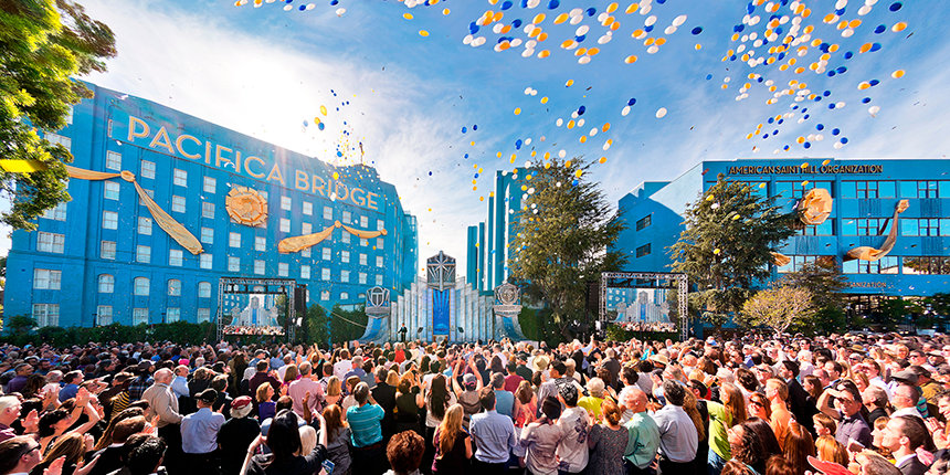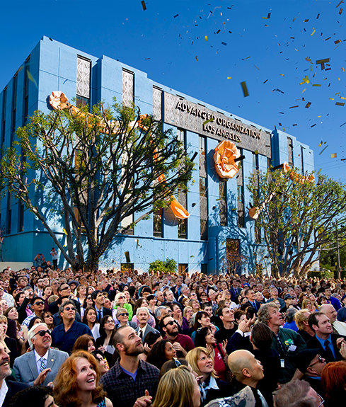 Para subrayar la importancia de la ocasión, las ceremonias de dedicatoria fueron conducidas por el Presidente de la Junta de Religious Technology Center, el Sr. David Miscavige. El Sr. Miscavige se dirigió a los scientologists asistentes diciendo: “Hoy, cumplimos la visión de L. Ronald Hubbard del Puente del Pacífico Ideal para todos los scientologists de Los Ángeles y, de hecho, de Estados Unidos. Porque aquí se encuentran los pilares físicos de un Puente que está ahora al alcance de todos en nuestra Edad de Oro: un Puente que representa el ascenso a la libertad espiritual total, un Puente que se extiende no sólo por un bulevar... sino que se extiende hasta la eternidad misma”.