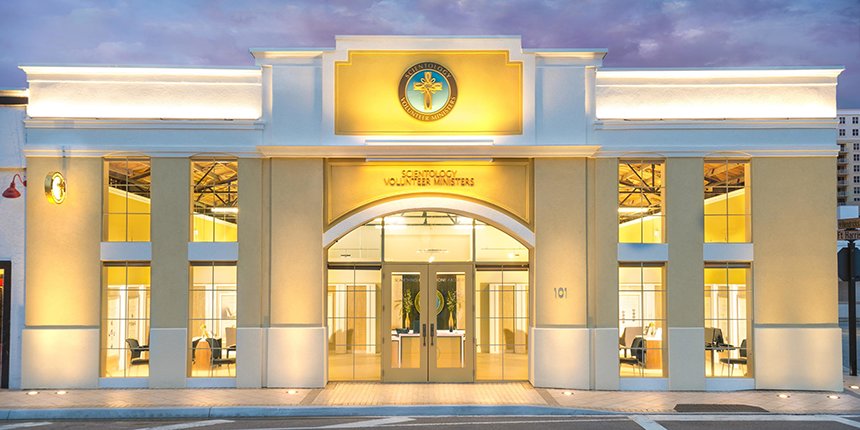Con la presencia de Scientology en Clearwater y más de 10 000 Scientologists que llaman a esta ciudad su casa, las nuevas instalaciones de los Ministros Voluntarios personifican la aceptación entusiasta de la Iglesia de su papel como proveedor de soluciones para todos en la comunidad.