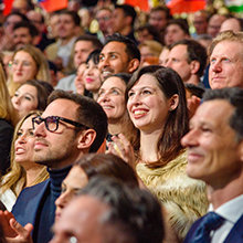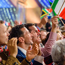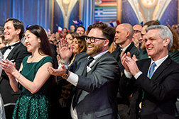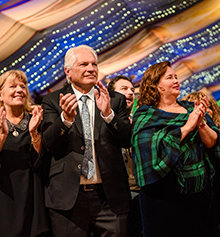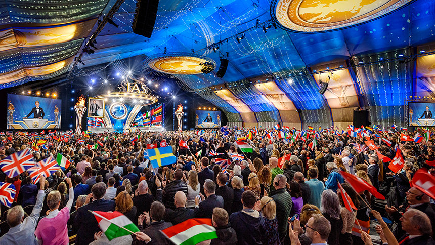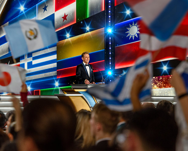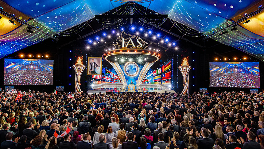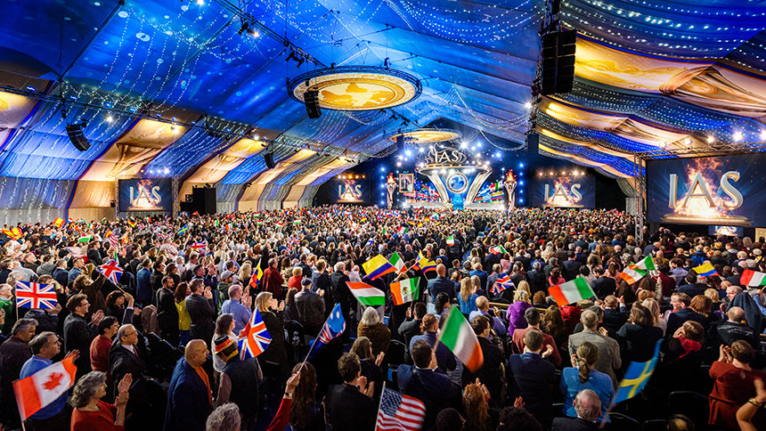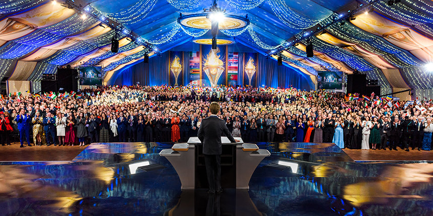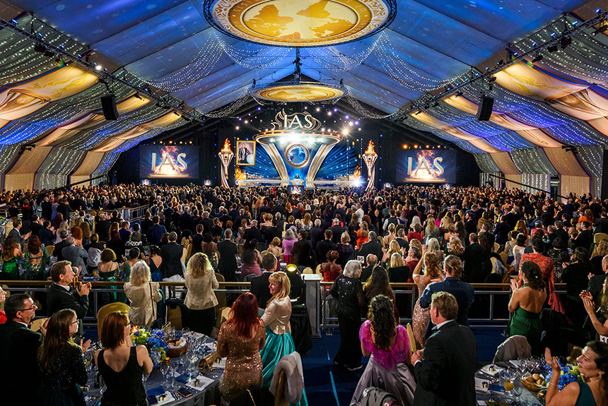 El sábado por la noche, la Gran Carpa llegó a la vida resplandecientemente como el lugar para el Baile de Patrones anual de la IAS. El evento de gala reconoció a los miembros de la IAS de 59 países por su dedicación constante para impulsar el movimiento humanitario de la IAS. La noche adquirió un significado aún mayor dado que, en los cuatro años desde el último Baile de Patrones en Saint Hill, casi 5000 Scientologists se convirtieron en Patrones de la IAS: un más alto que nunca en la historia.