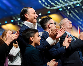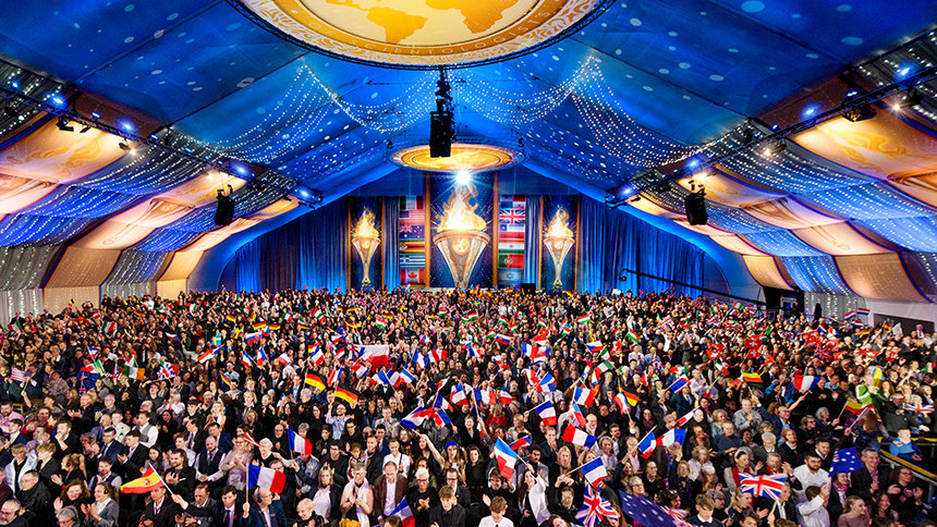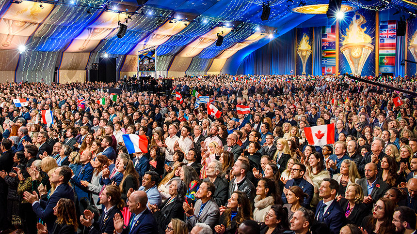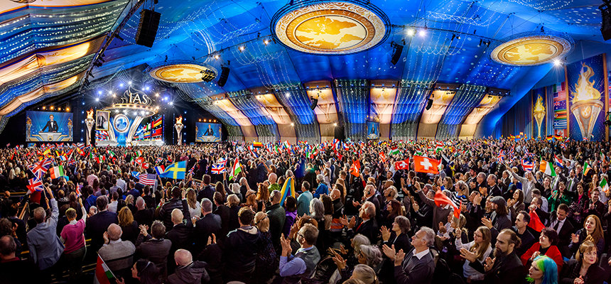 Reunidos de todo el Reino Unido, Europa, EE. UU. y tan lejos como África y Asia, la expectante multitud entró por la alfombra roja a la exquisita Gran Carpa. A medida que el escenario estallaba en luz, que indicaba el comienzo del evento de apertura, el Sr. David Miscavige, Presidente de la Junta del Religious Technology Center, hizo su entrada a una estruendosa ovación de pie, una de duración histórica.