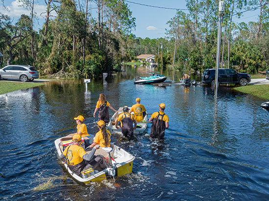 El Sr. Miscavige luego puso el foco de atención en la fuerza internacional de voluntarios de la Iglesia, los Ministros Voluntarios de Scientology. El grupo respondió al llamado en cada desastre natural importante de los últimos cuatro años: después de un terremoto devastador en Cachemira, tifones en Japón, incendios cataclísmicos en Australia, inundaciones repentinas en Indonesia, una erupción volcánica en St. Vincent, monzones en Pakistán y huracanes en la costa sudoeste de Florida. En total, los Ministros Voluntarios proporcionaron ayuda de primera línea en los lugares de 45 desastres en 20 naciones.
