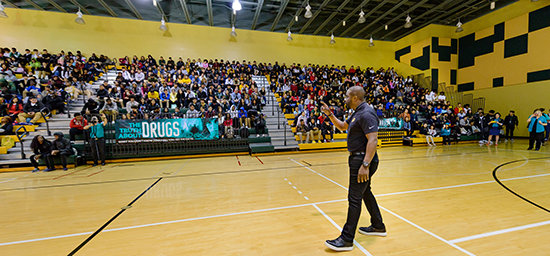 Impulsando aún más a la audiencia en la revisión mundial de la misión humanitaria de la Iglesia, el Sr. Miscavige puso en foco las iniciativas de educación patrocinadas por la IAS en uso en todas partes: Unidos por los Derechos Humanos para hacer de la Declaración Universal de los Derechos Humanos una realidad en cada país; El Camino a la Felicidad para restaurar la dignidad y el honor a la Humanidad a través de los principios morales de sentido común; y Un Mundo Libre de Drogas para cambiar la corriente del abuso de drogas para una generación con la Verdad Sobre las Drogas. Como una muestra de los logros alcanzados del 2020 al 2023: