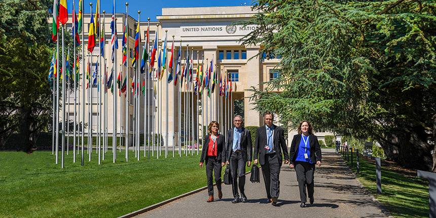 La gira del logro de la IAS continuó con la Comisión de Ciudadanos por los Derechos Humanos (CCHR), culminando en una historia de perseverancia implacable. El sitio fue la Sede Europea de las Naciones Unidas en Ginebra, Suiza. La victoria histórica fue el resultado de décadas de trabajo de CCHR. Después de informar sobre el abuso psiquiátrico año tras año en un total de 18 naciones, CCHR recibió una invitación formal a una primera consulta de las Naciones Unidas sobre Derechos Humanos en la Salud Mental. CCHR presentó testimonio experto, pidiendo vehementemente una prohibición de la “coerción y privaciones de libertad en la salud mental”. Cuando la Oficina del Alto Comisionado para los Derechos Humanos puso el mandato de la salud mental ante el Consejo de Derechos Humanos de la ONU, el resultado anunció un cambio radical en el campo de la salud mental. El informe final del consejo y las directrices conjuntas de implementación de la OMS (Organización Mundial de la Salud), citan la contribución de CCHR, oficialmente dicen por decreto de la ONU: