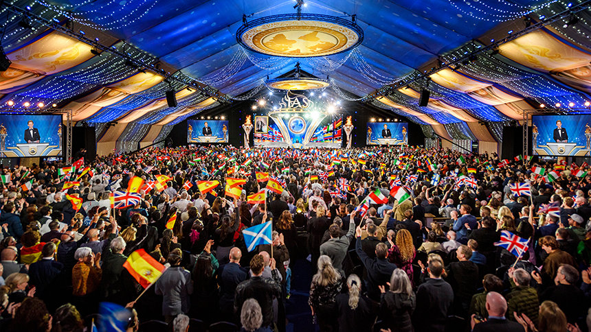 Miembros de la Asociación Internacional de Scientologists (IAS) que representan a 90 naciones se reunieron en East Grinstead, sur de Inglaterra, para una celebración de fin de semana honrando cuatro años históricos de dedicación, determinación y logro.